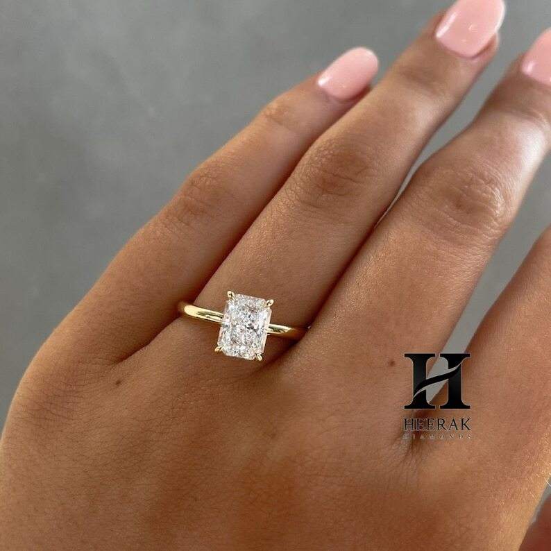 แหวนเพชรทรงรัศมี 2 กะรัต หรูหรา สำหรับหมั้นและวันครบรอบ ทำจากทองคำขาว 14K ประดับเพชรเม็ดเดี่ยว รับรองโดย IGI