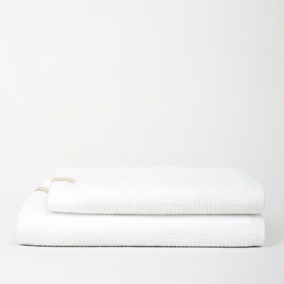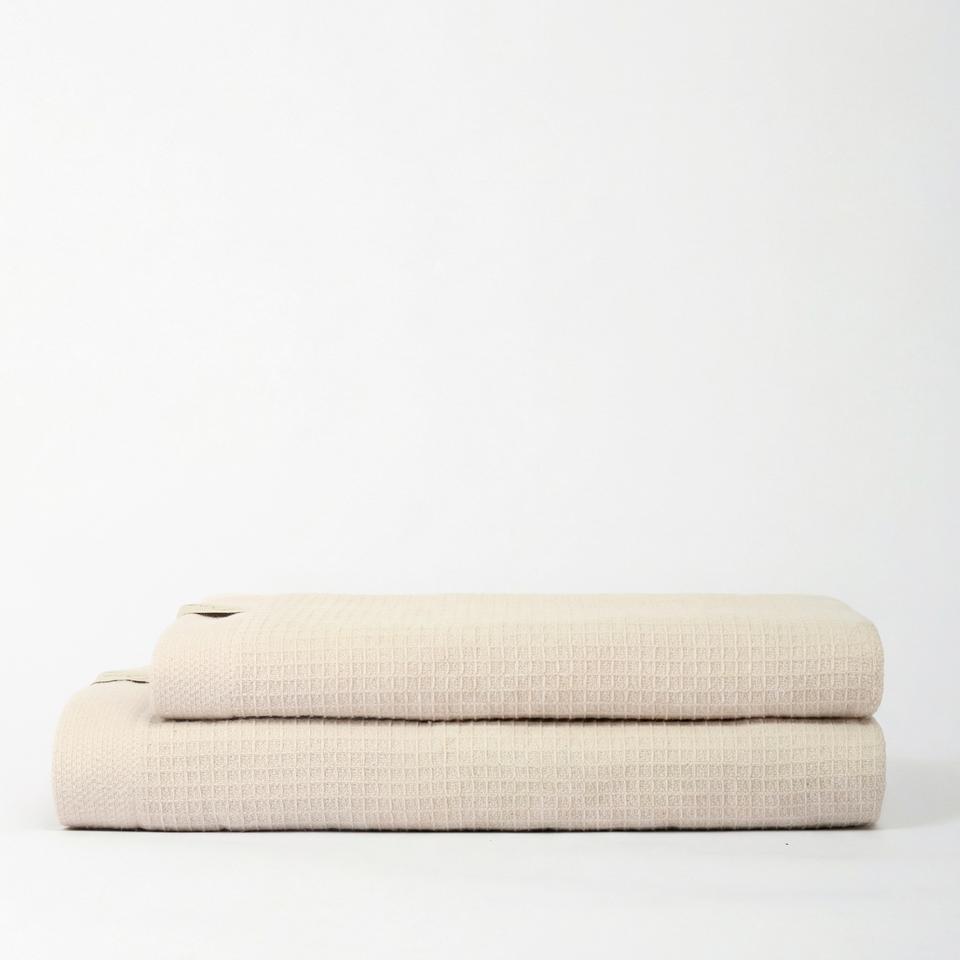 ชุดผ้าขนหนูเช็ดหน้าและเช็ดตัวแบบใช้แล้วทิ้งสุดหรู 2 ชิ้น ผลิตจากผ้าฝ้ายรักษ์โลก ดีไซน์ลายวาฟเฟิลชั้นนอก แกนในนุ่มพิเศษเพื่อความสบาย