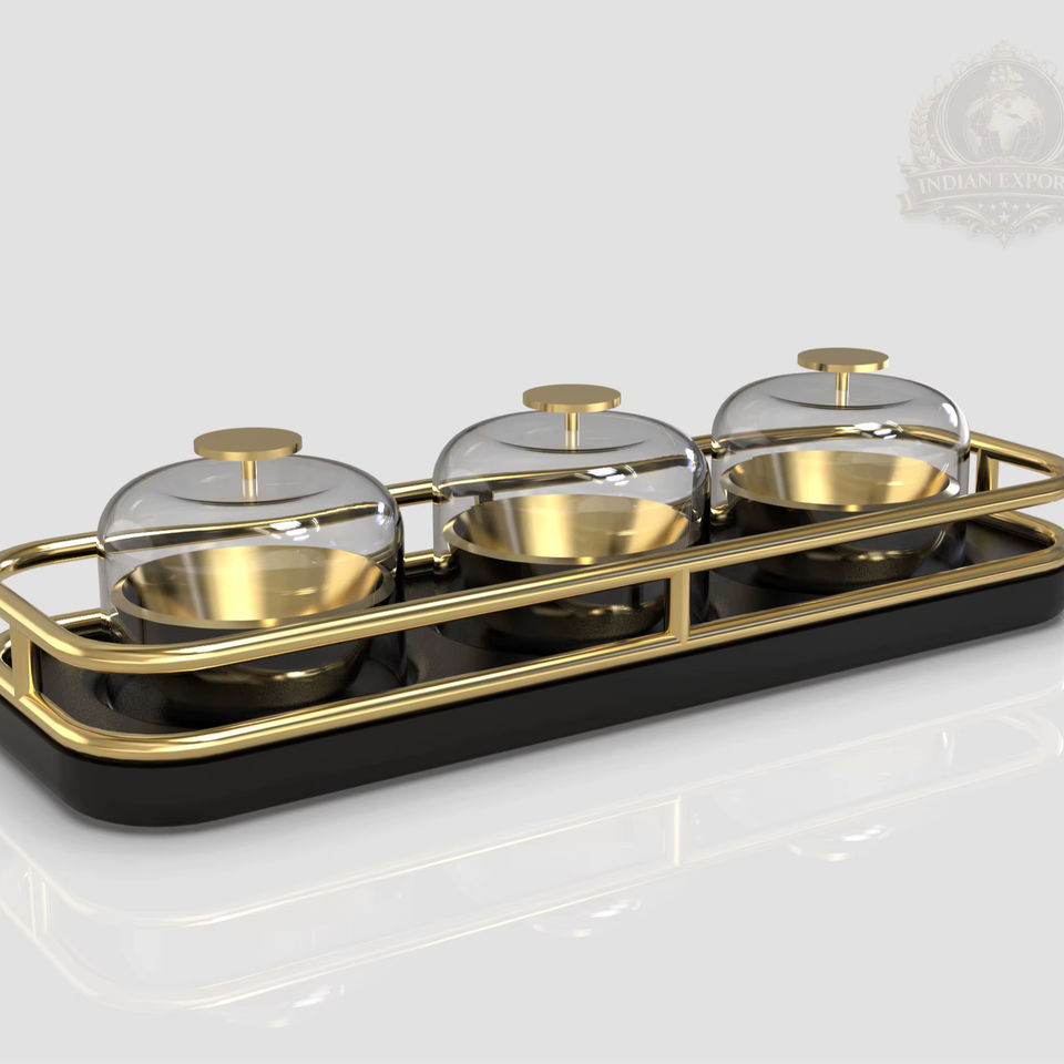ชุดเสิร์ฟหรู 3 ชิ้น พร้อมฝาปิดแก้วทรงโดม ชุดชามขนมสีดำและทอง ชุดถาดเสิร์ฟ ดีไซน์อิสราเอล ชุดเครื่องปรุงพรีเมียม