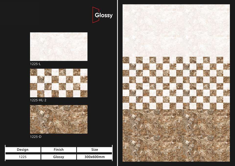 กระเบื้องบุผนังเซรามิกเคลือบเงาหรูหรา ขนาด 300x600 มม. (12x24 นิ้ว) โซลูชั่นการตกแต่งผนังภายในอย่างมีสไตล์สำหรับห้องน้ำสมัยใหม่