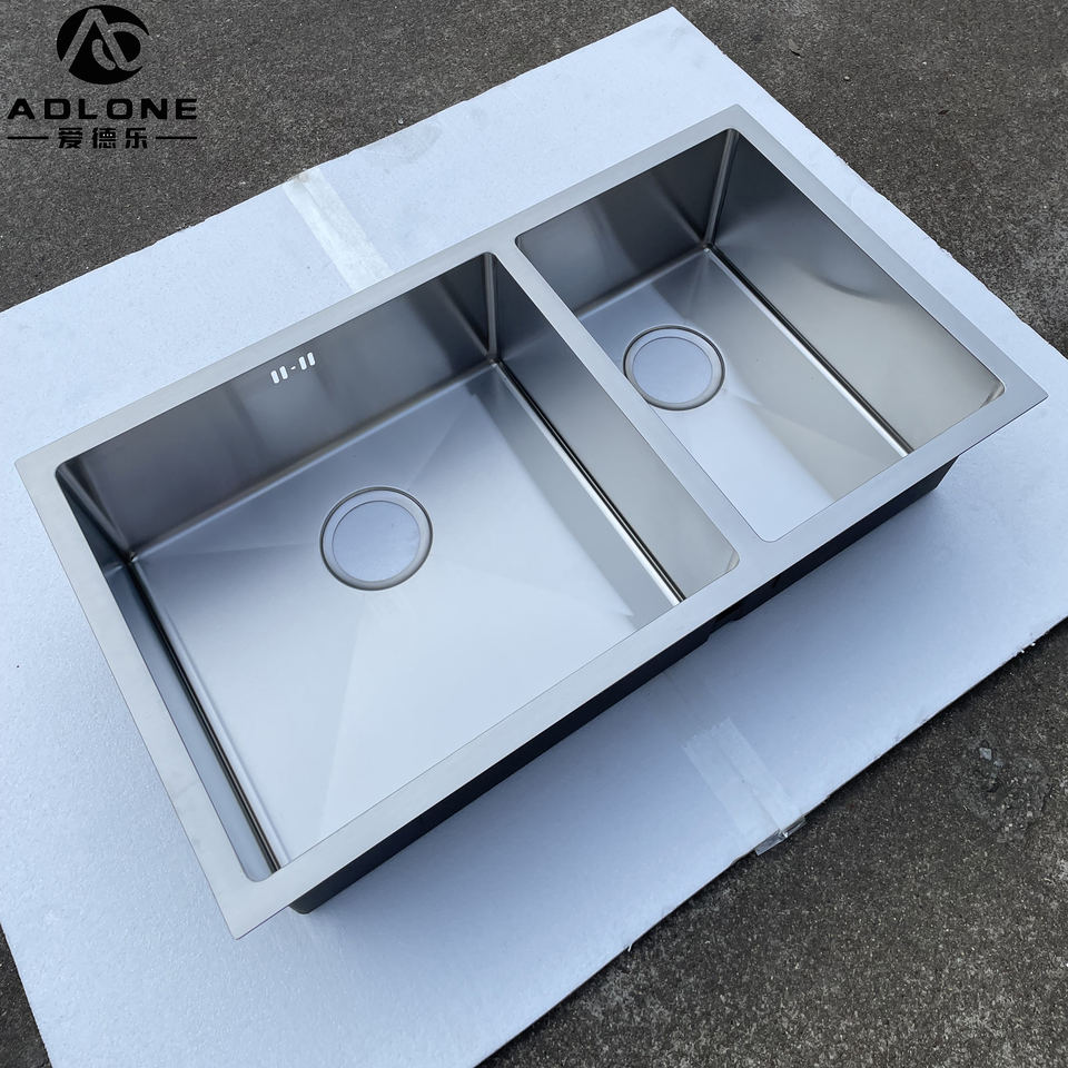 อ่างล้างจานสแตนเลสสองชั้นแบบ304ดีไซน์ใหม่ไม่มีก๊อกน้ำหรูหรา