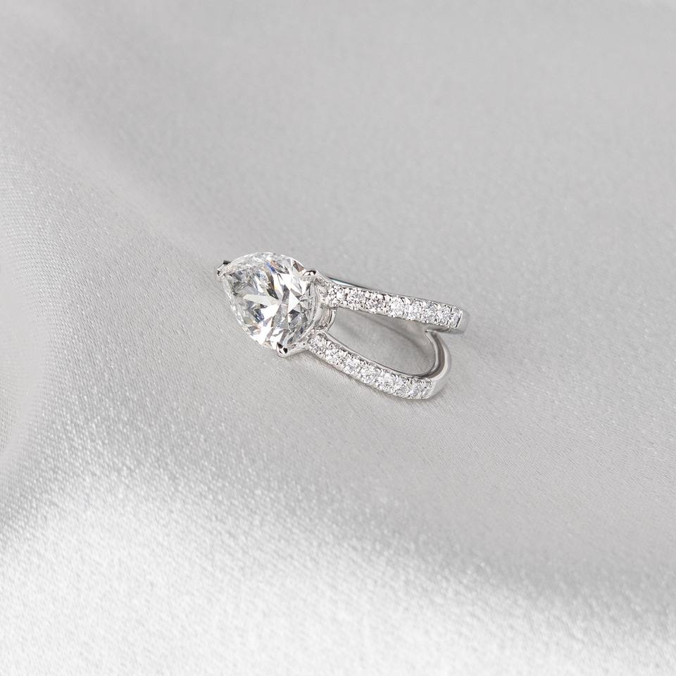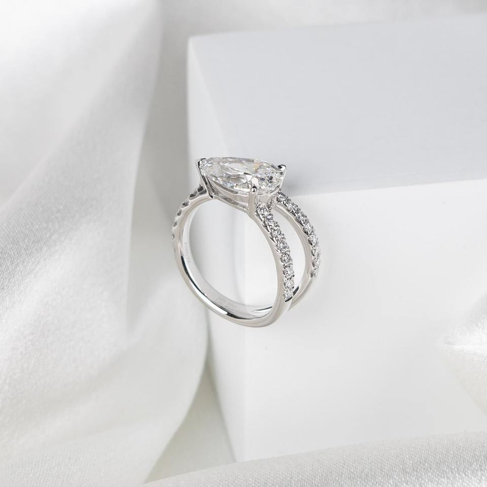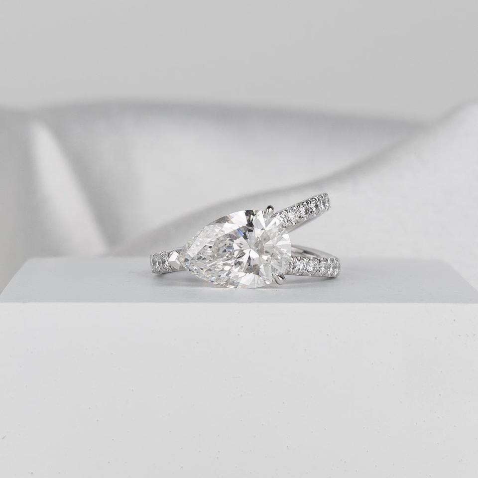 แหวนหมั้นเพชรทรงลูกแพร์ 3 กะรัต หรูหรา ดีไซน์วงแหวนแยก 14K ทองคำขาว ประดับเพชรเลี้ยงในห้องปฏิบัติการ สง่างาม เหมาะสำหรับเจ้าสาว