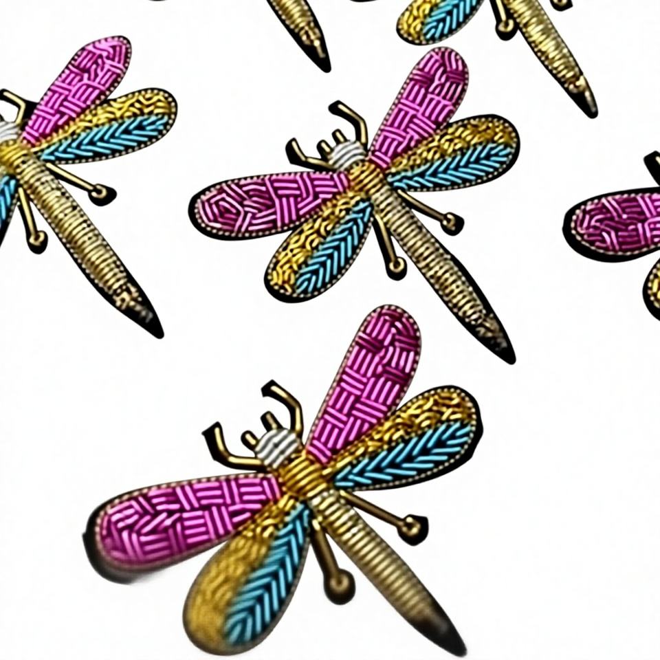 เข็มกลัดรูปแมลงปอปักลาย 3 มิติ หรูหรา ประดับด้วยลวดทอง สำหรับตกแต่งเสื้อผ้าและเครื่องประดับ