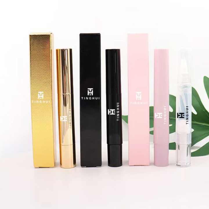 ปากกาบีบเล็บแบบหมุนสีเงินสีทองขนาด 3 มล. 5 มล. พร้อมแปรง ปากกาเปล่าสำหรับน้ำมันบำรุงเล็บพร้อมกล่อง หลอดทำความสะอาดฟันพร้อมหัว applicator