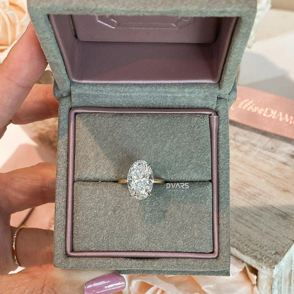 แหวนเพชรทรงรี 4 กะรัต แบบซ่อนรูปทรงรัศมี ประดับเพชรเลี้ยงในห้องปฏิบัติการ เกรด VVS สี F ชุบทอง 18K ได้รับการรับรองจาก IGI