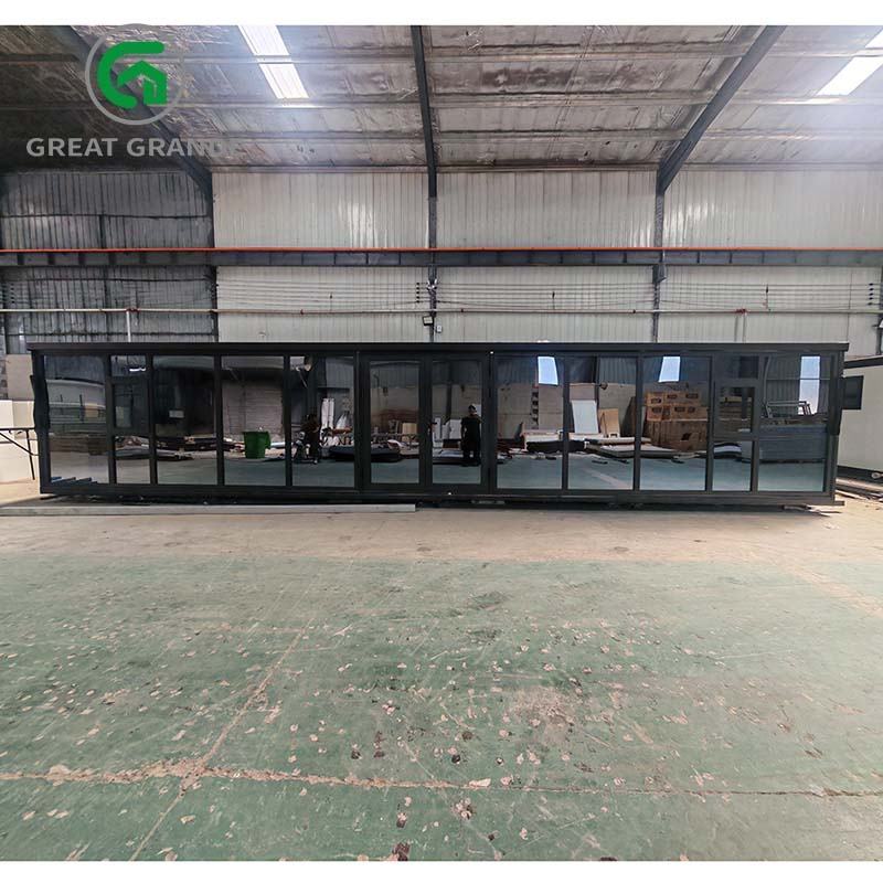 บ้านคอนเทนเนอร์หรูขนาด 40 ฟุต ผนังกระจก 3 ห้องนอน บ้านแบบโมดูลาร์ อาคารอพาร์ทเมนต์สำเร็จรูป บ้านหลังเล็ก สำนักงานเคลื่อนที่ วิลล่า