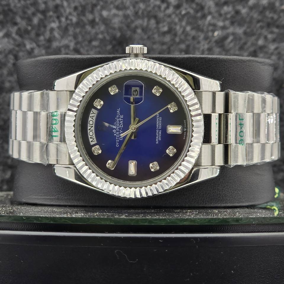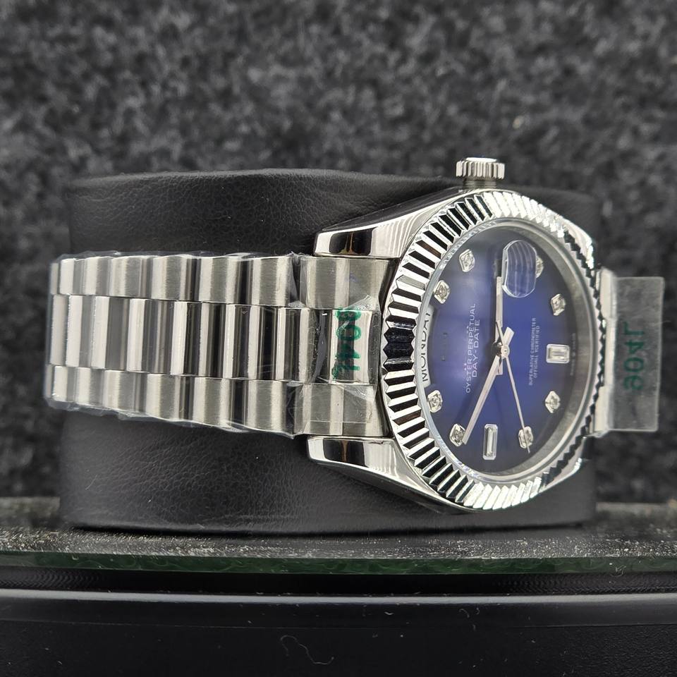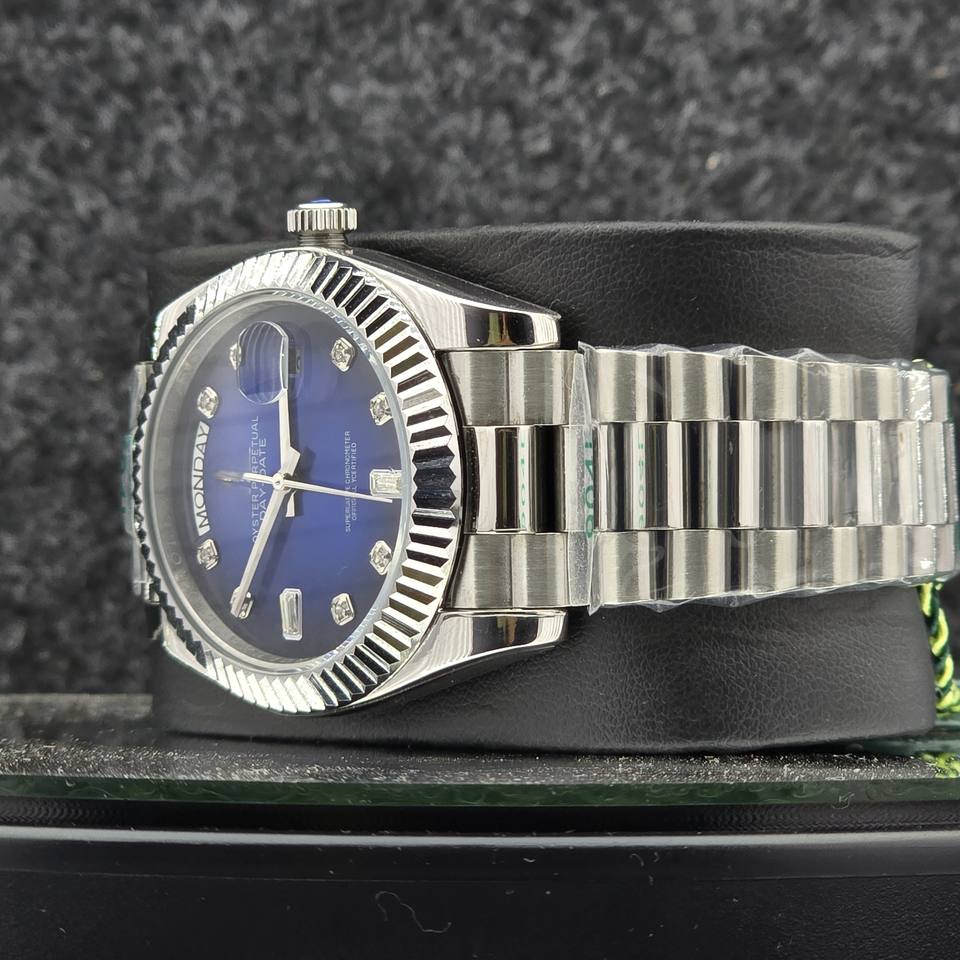 Luxury 40mm Men's Watch Stainless Steel Automatic Mechanical Date Blue DialDay Diamond Hour Markers Presidential Wristwatch