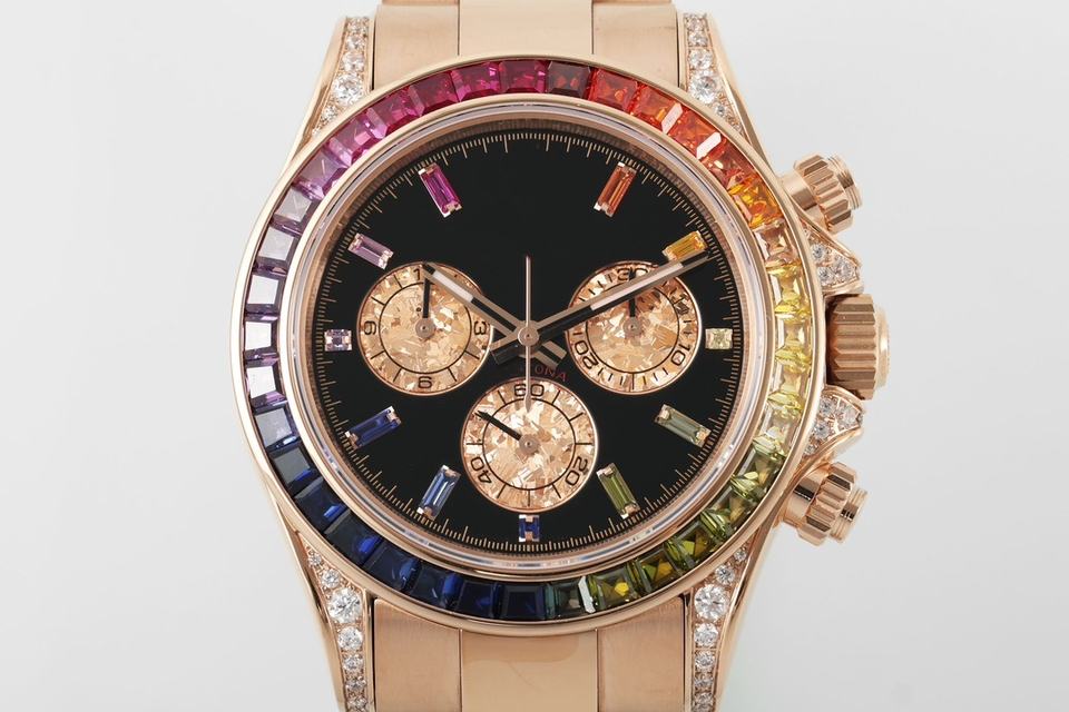 นาฬิกาสปอร์ตเพชรสีรุ้งประดับเพชรสีโรสโกลด์40มม. หรูหรา4130การเคลื่อนไหวนาฬิกาสเตนเลส904L คุณภาพสูงสำหรับนักประดาน้ำ ZF โรงงานใหม่