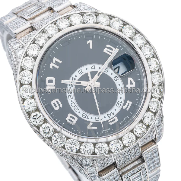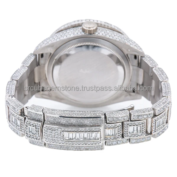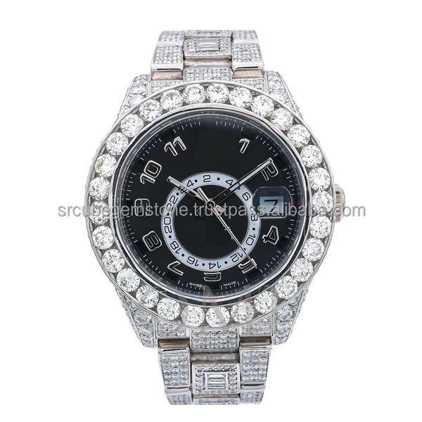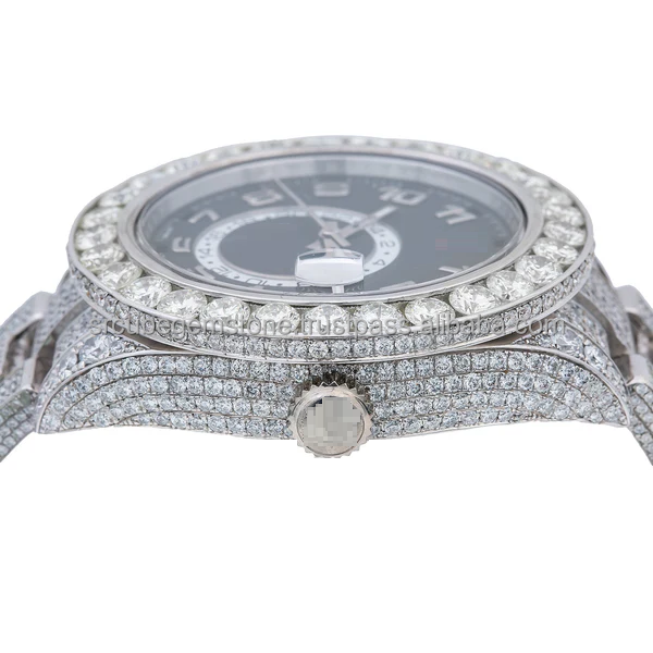 นาฬิกาเพชรโมอิสหน้าสีดำขนาด41มม. หรูหราสไตล์ฮิปฮอปโบราณแบบกำหนดเองคุณภาพสูงพร้อมใบผ่านการรับรอง VVS