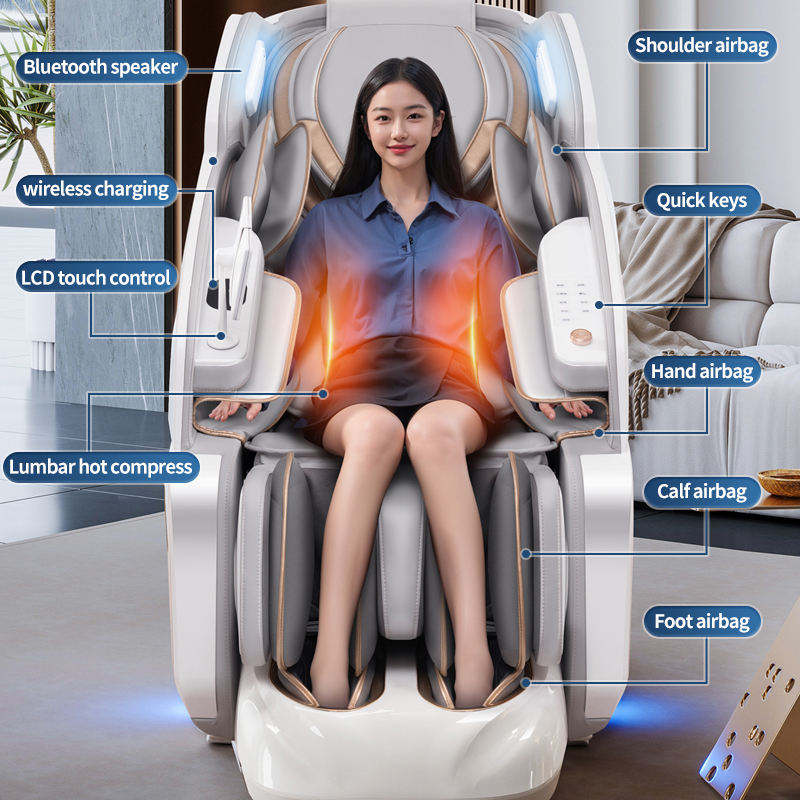 เก้าอี้นวด 4D ระดับพรีเมียม นวดทั่วร่างกาย พร้อมระบบนวดเท้าแบบชิอัตสึ ราง SL ปรับเอนนอนได้แบบไร้แรงโน้มถ่วง พร้อมระบบทำความร้อน นวดคลึง นวดตบ นวดยืด และบลูทูธ