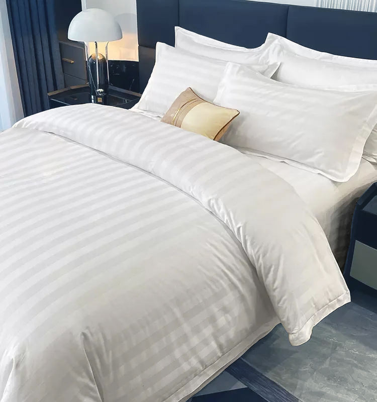 ชุดผ้าปูที่นอนไมโครไฟเบอร์ลายทางนูน 4 ชิ้น หรูหรา 70gsm ผ้าปูที่นอนแบบรัดมุม ปลอกหมอน สำหรับเตียง บ้าน โรงแรม