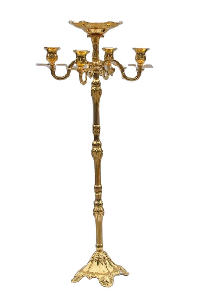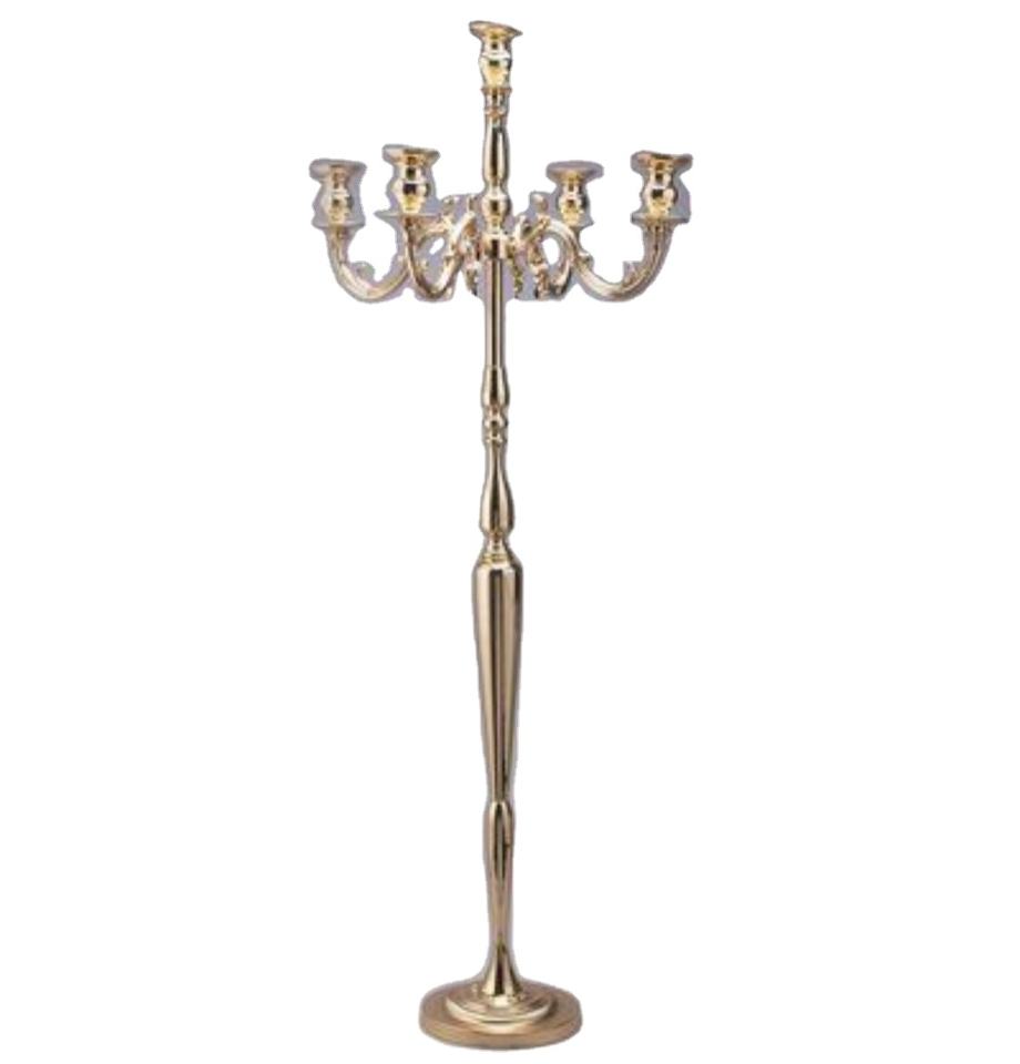 เชิงเทียนโลหะสูงตกแต่งโต๊ะแต่งงานแบบ5แขนของตกแต่งโต๊ะสูงเชิงเทียนสีทอง