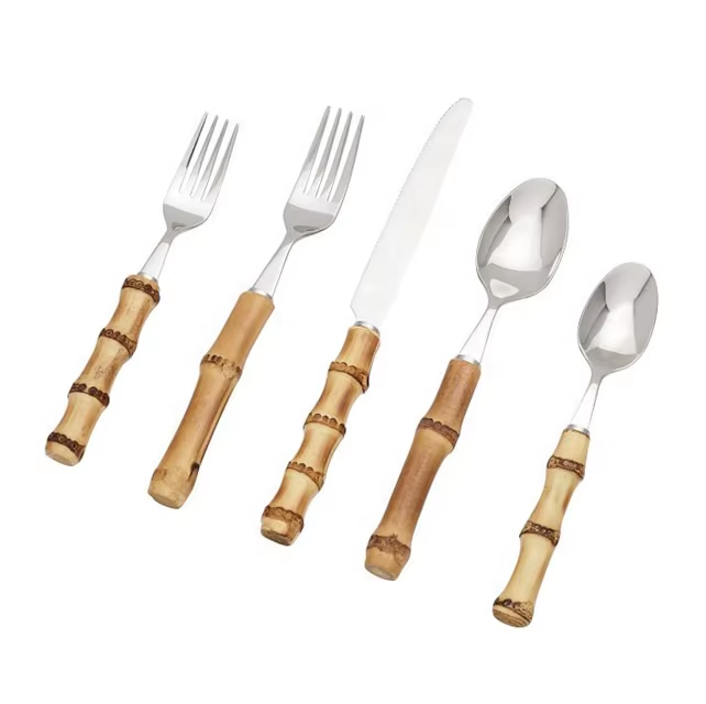 Stainless Steel Flatware Set with Bamboo Handle