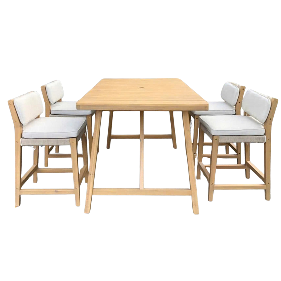 ชุดโต๊ะรับประทานอาหาร 5 ชิ้น สไตล์โมเดิร์น ดีไซน์หลังแบบบันได ทำจากไม้กระถินณรงค์เคลือบสีน้ำมัน ยี่ห้อ Minh Phuoc Furniture สำหรับใช้ในบ้าน
