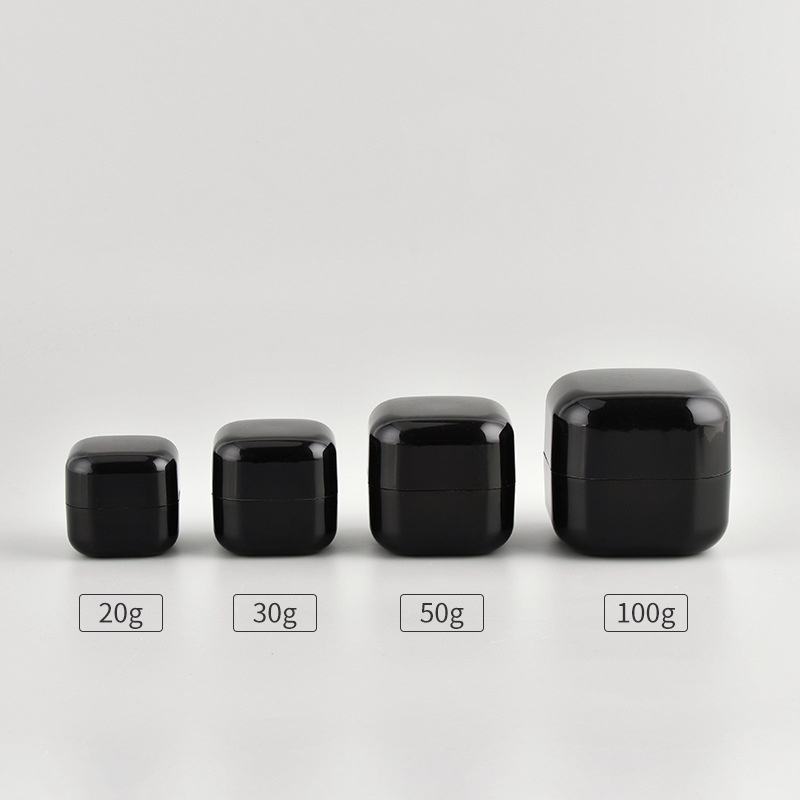 ขวดเครื่องสำอางพลาสติกทรงสี่เหลี่ยมพร้อมฝาปิดโถครีมโลชั่นติดผนังสองชั้นขนาด50กรัม100กรัมหรูหรา
