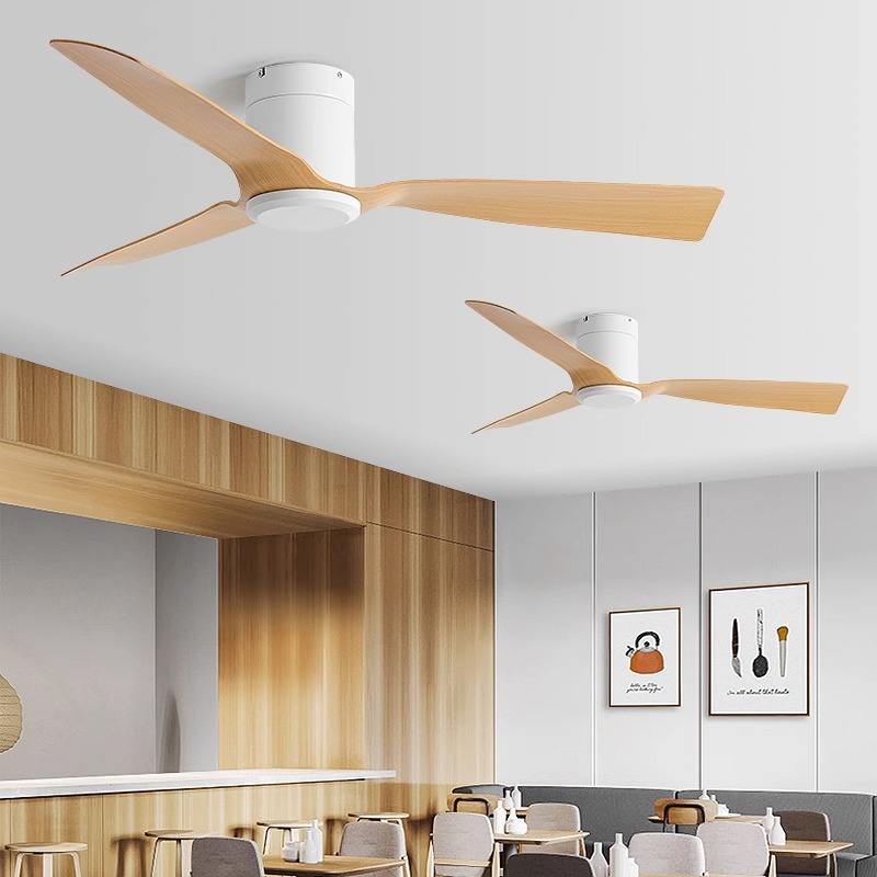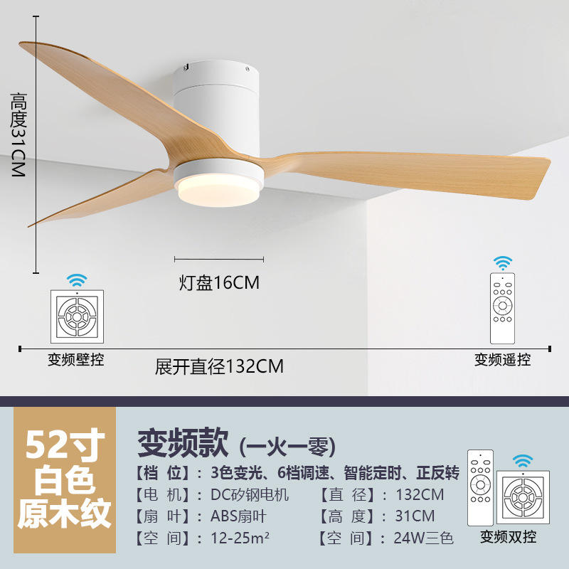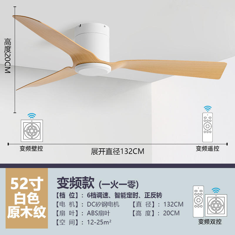 พัดลมเพดานขนาด52นิ้วแบบหรูหรามอเตอร์ไฟฟ้ากระแสตรงแบบโบราณมีรีโมทควบคุมด้วยรีโมทคอนโทรลสีเทาอ่อนลายเนื้อไม้