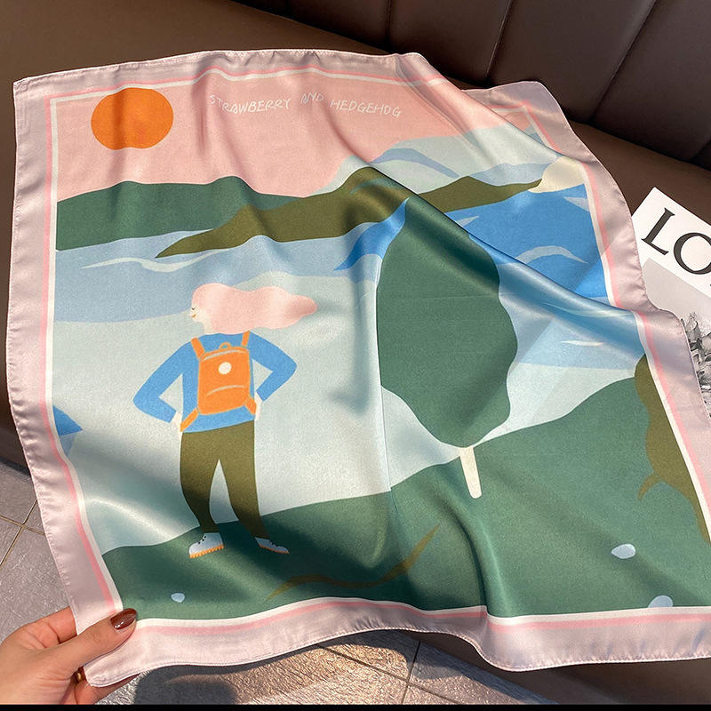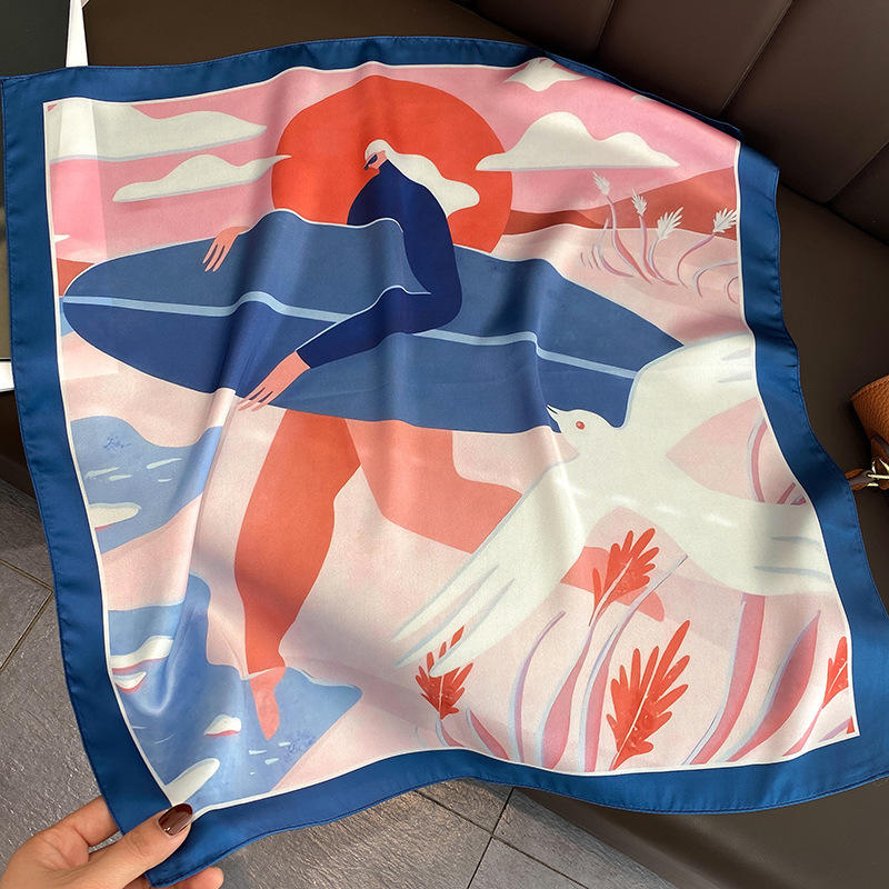 ผ้าเช็ดหน้าสี่เหลี่ยมขนาด53*53ซม. สำหรับผู้หญิงผ้าพันคอผ้าไหมขนาดเล็กสำหรับฤดูร้อน