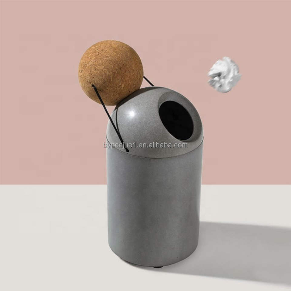 ถังขยะไม้คอนกรีต MDF 5L หรูหราสไตล์นอร์ดิกสำหรับบ้านสำนักงานห้องครัวห้องน้ำพร้อมตะกร้าเก็บขยะทำจากไม้ธรรมชาติ