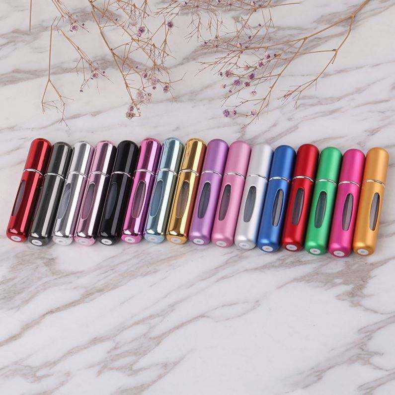 ขวดสเปรย์น้ำหอมแบบเติมได้ ขนาด 5 มล. สำหรับน้ำหอมและน้ำมันหอมระเหย วัสดุอะลูมิเนียมคุณภาพสูง พร้อมหัวฉีดแบบพ่นฝอยละเอียด