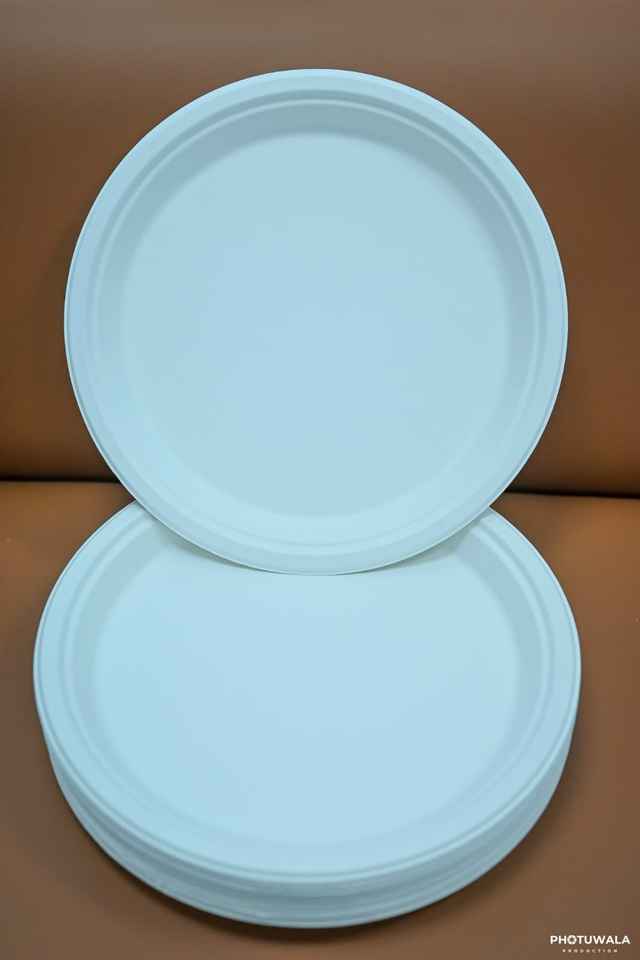 จานกลมทำจากชานอ้อยแบบใช้แล้วทิ้งเป็นมิตรต่อสิ่งแวดล้อมแผ่นกลมทำจากอ้อยเส้นใยสำหรับงานแต่งงาน