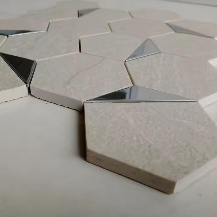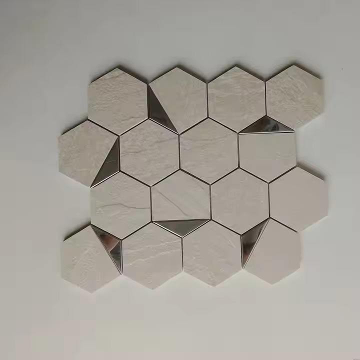 Luxury 73mm Hexagon Silver PVD Ceramic Mosaic Tile BraApricot Glossy Matte Finish for Interior Wall Decoration Villa Hotel