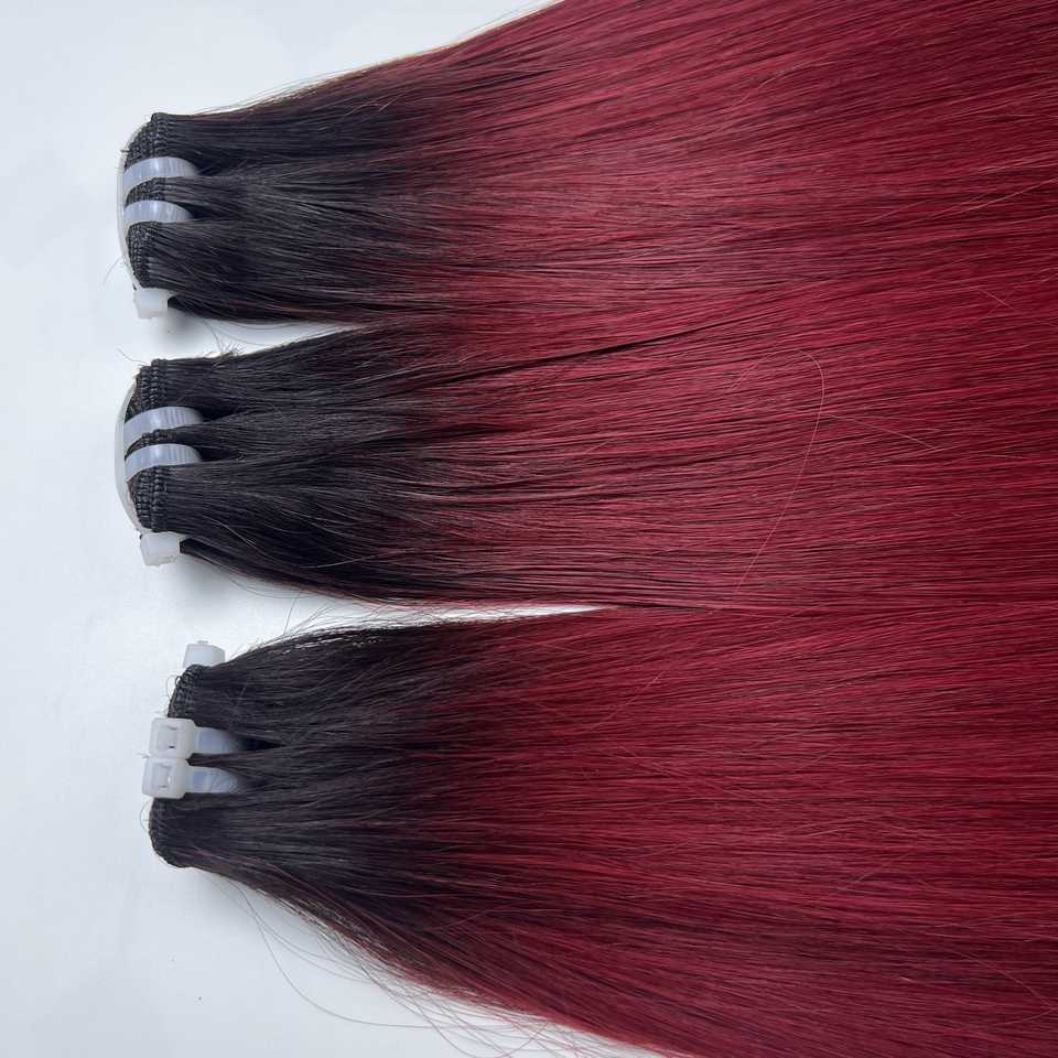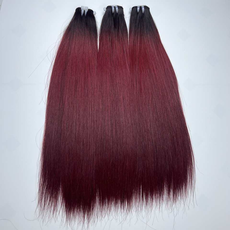 วิกต่อผมตรงสีเบอร์กันดีสุดหรู8-40นิ้ววิกต่อผม99J แบบไม่หลุดร่วง