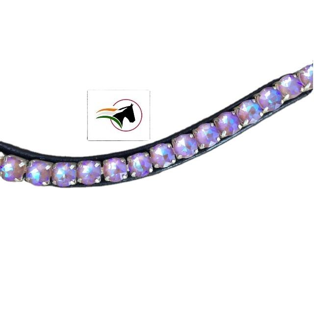 Luxury 8mm Coffee Lacquer Crystal Real Leather Wave Design Horse Brow Band Trendy Take Equestrian Back Open Sticky Tape Loop