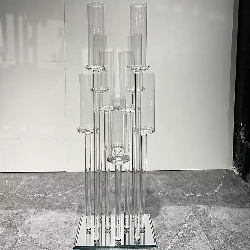 เชิงเทียนโลหะสีขาวสำหรับทางเดินในงานแต่งงานยาว9แขนยาว1.2เมตรไม่มีไฟฟ้าของตกแต่งโต๊ะวางกลาง