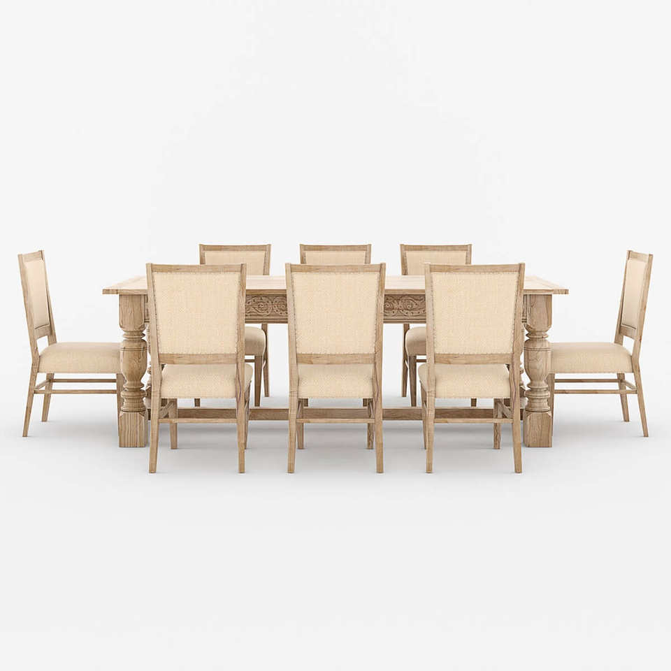 ชุดโต๊ะรับประทานอาหาร9ชิ้นสุดหรูทำด้วยมือไม้เนื้อแข็งไม้สักโต๊ะเก้าอี้หุ้มเบาะเก้าอี้ร้านอาหารที่ทันสมัย