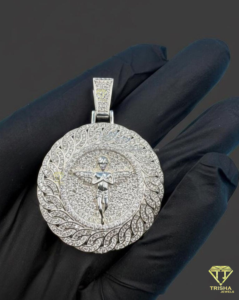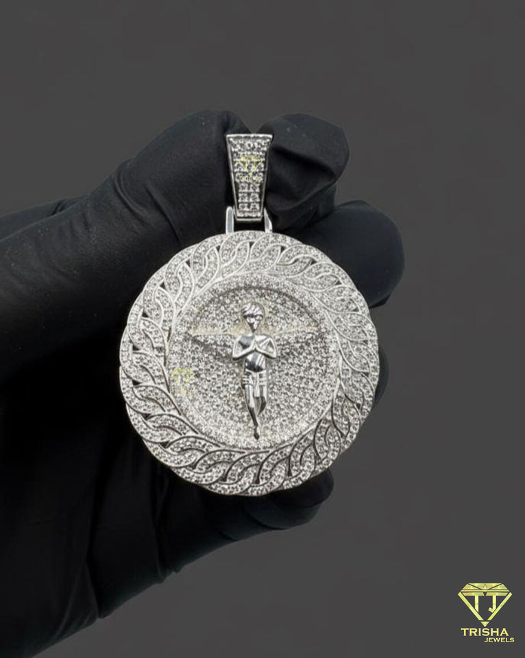 จี้รูปปีกนางฟ้าประดับเพชรเงินแท้ 925 สำหรับผู้ชาย จี้รูปวงกลมนางฟ้าประดับเพชรแบบเต็มตัว