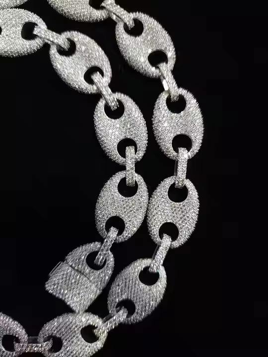 สร้อยเงินฮิปฮอปสุดหรูสร้อยคอเพชรโมอิส925สีเงินสำหรับเป็นของขวัญวันครบรอบที่สมบูรณ์แบบสำหรับเขาโดยมีการเชื่อมโยงทองคำขาว