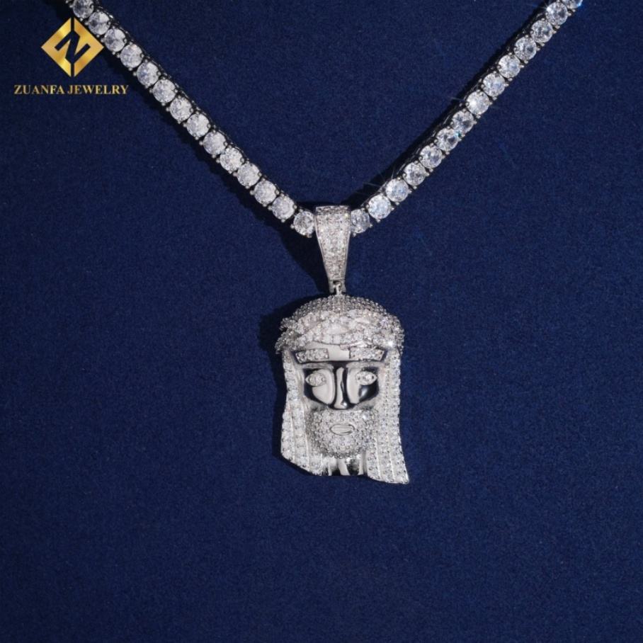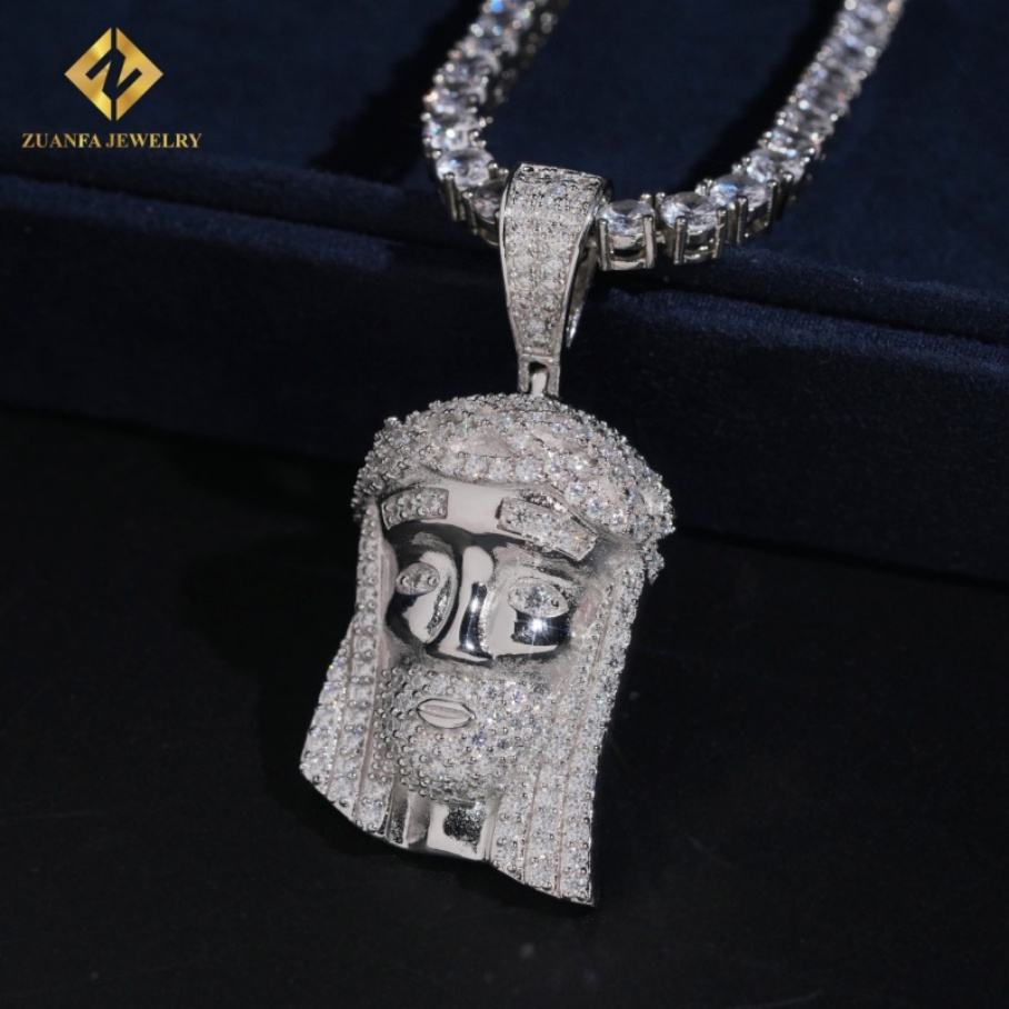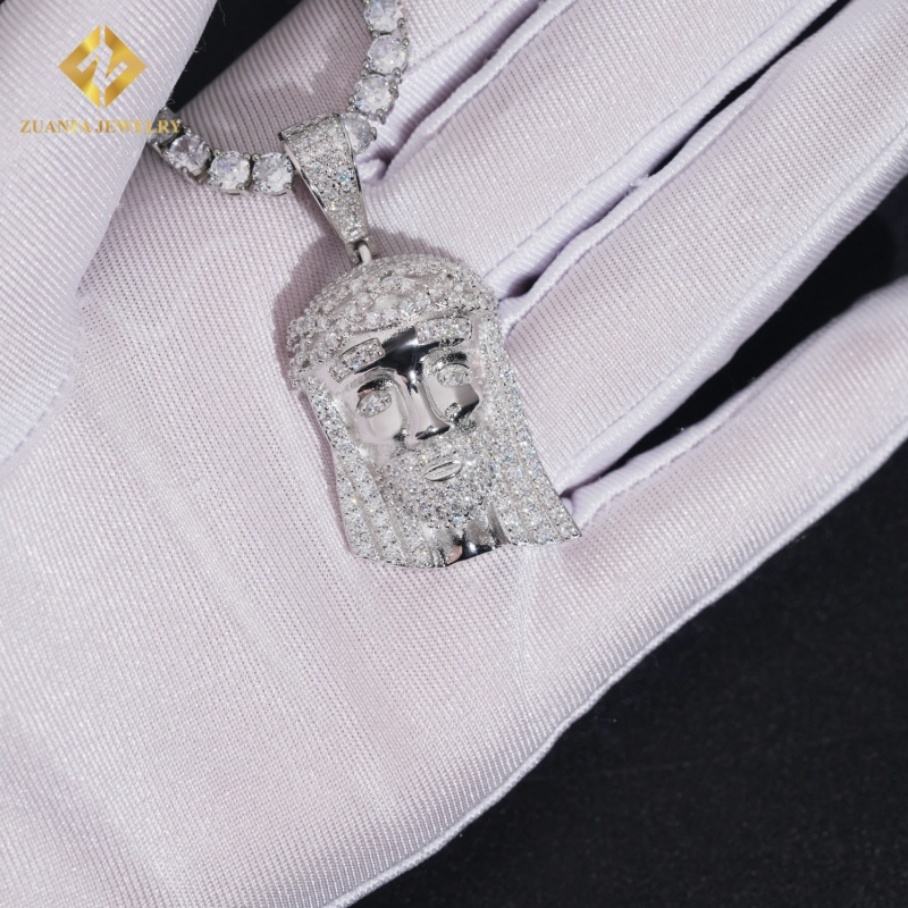 เครื่องประดับสุดหรูสีเงินสเตอร์ลิง925 VVS Moissanite ประดับเพชรเต็มแผ่นสไตล์ฮิปฮอปพระเยซูทรงเสน่ห์จี้ผู้ชาย