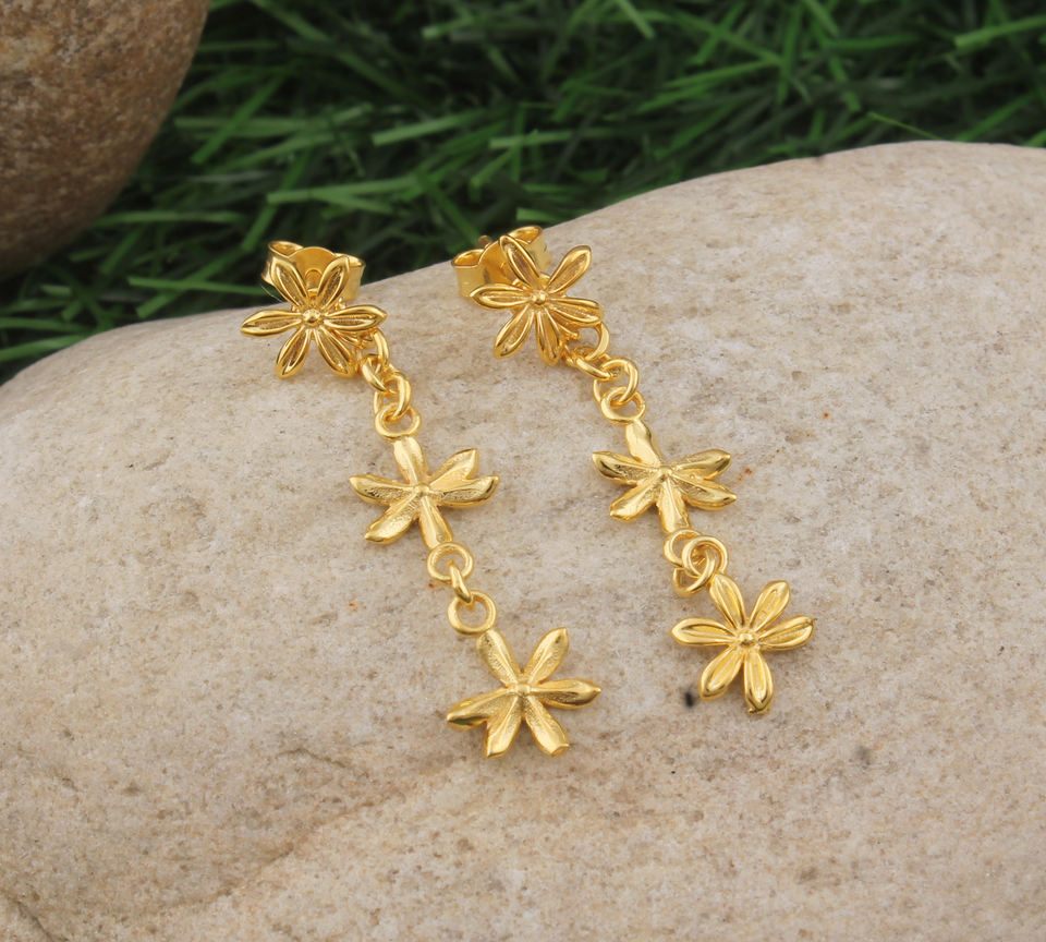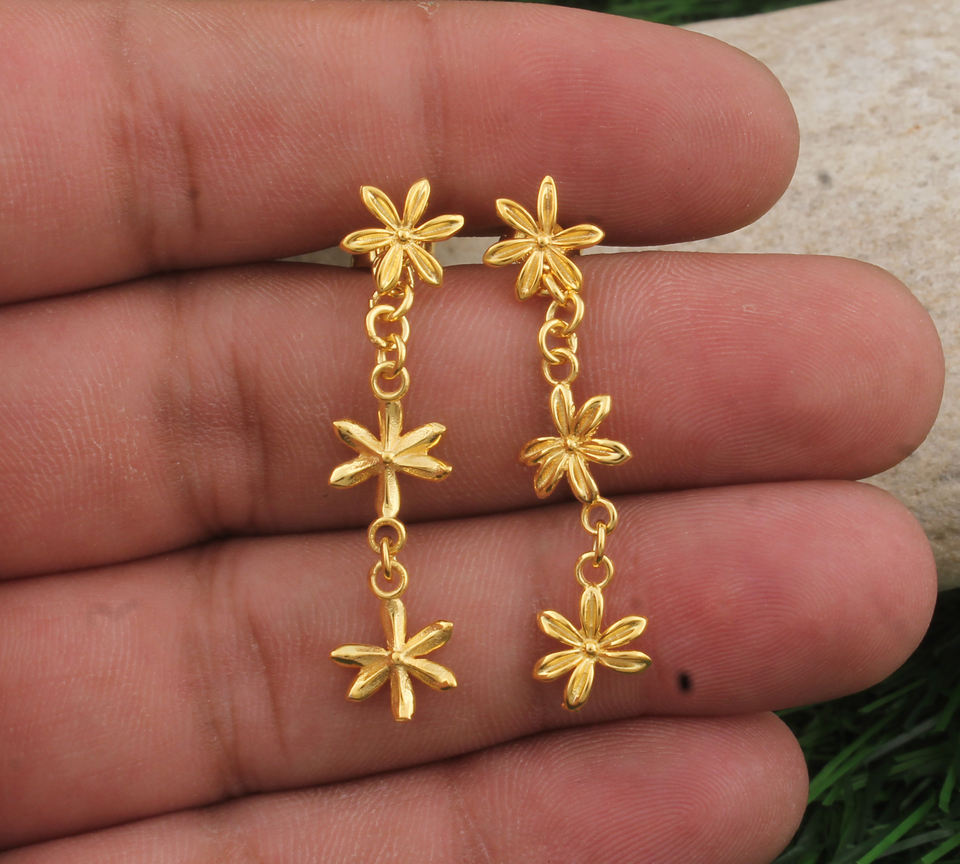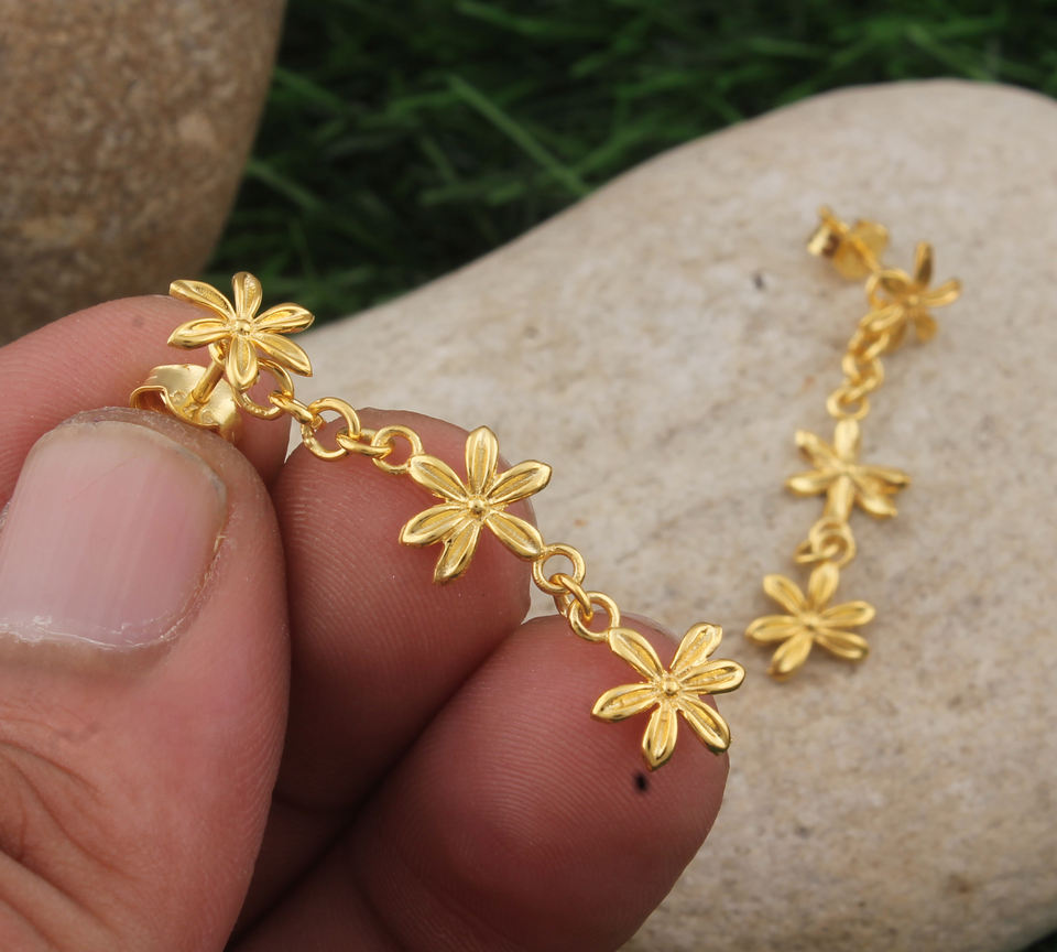 ต่างหูห้อยชุบทองหรูหรา คุณภาพสูง ต่างหูผู้หญิงรูปดอกไม้ เครื่องประดับชั้นดี ขายส่งสำหรับงานแต่งงาน