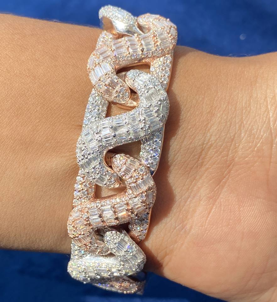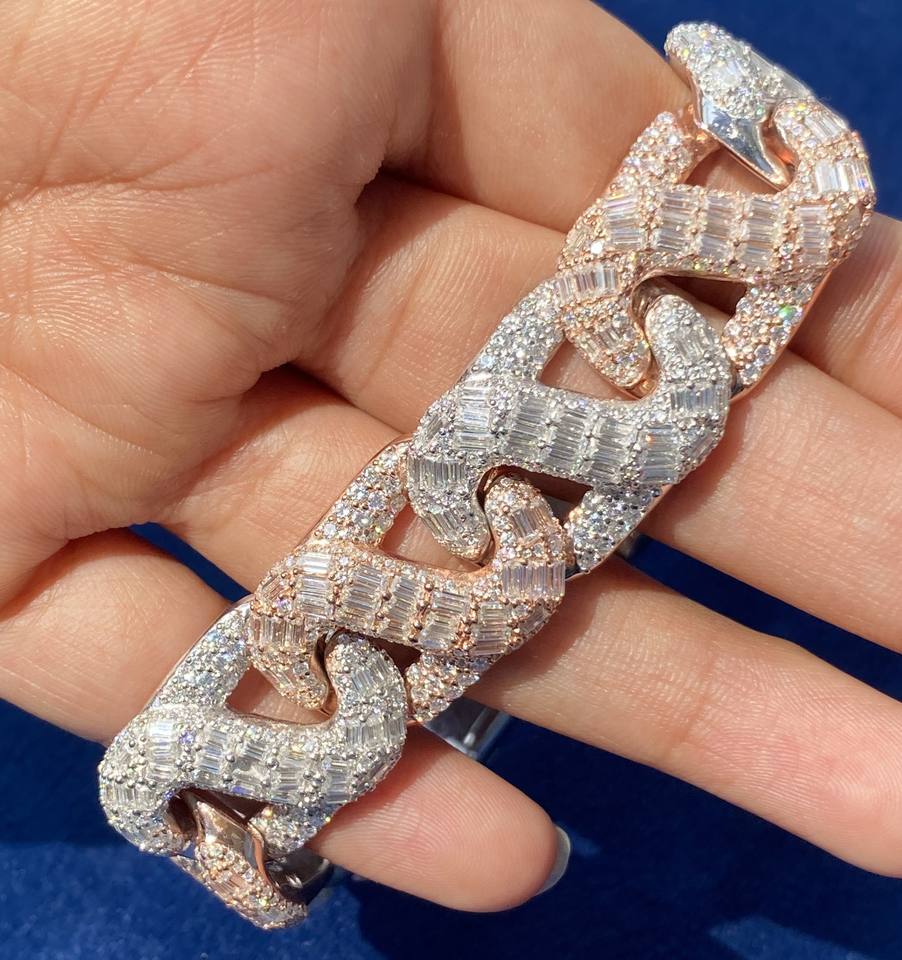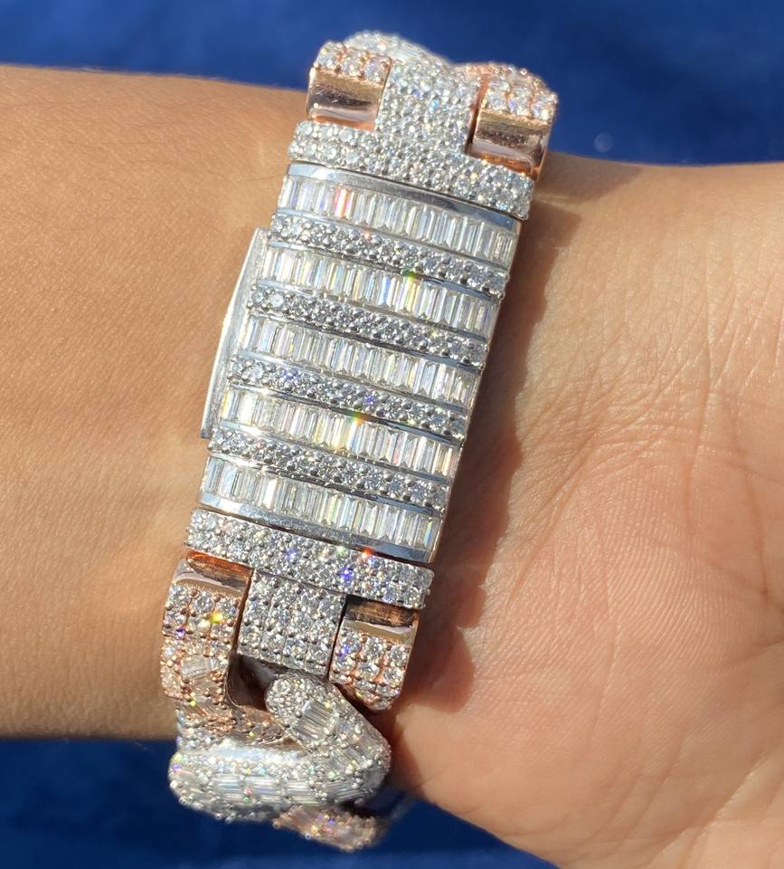 กำไลข้อมือเงินแท้ 925 ประดับเพชรโมอิสซาไนต์ทรงกลมและทรงบาแกตต์ ดีไซน์หรูหราแบบสองสี