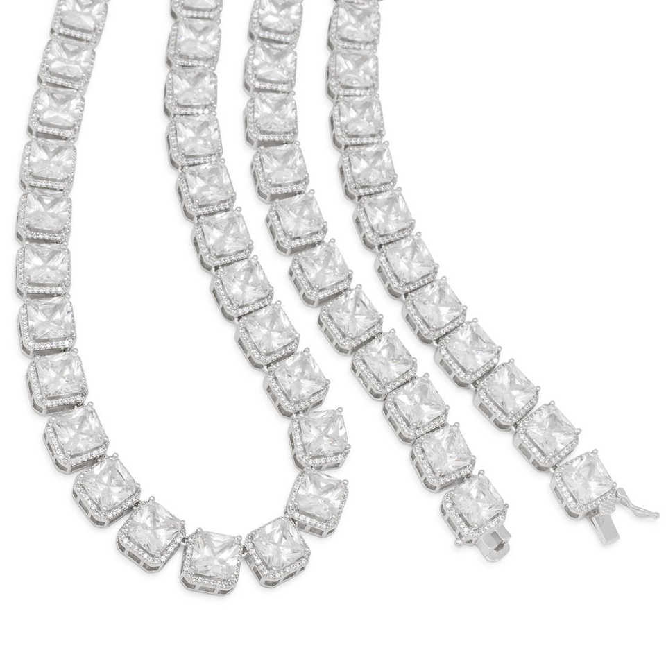 สร้อยคอผู้ชายดีไซน์ใหม่สุดหรูหรา ชุบทอง ประดับด้วยมอยส์ซาไนต์ทรงปรินเซสคัท เงินแท้ 925 สำหรับงานปาร์ตี้