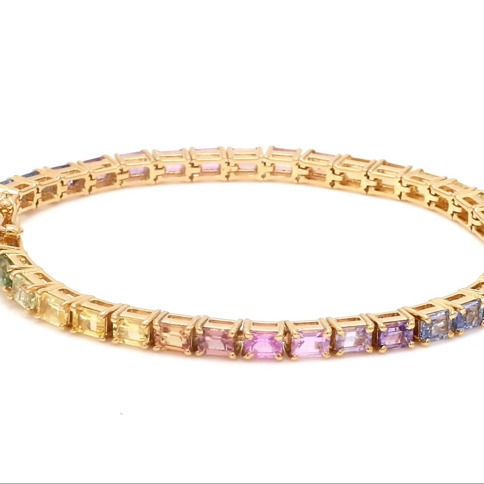 กำไล925เงินสเตอร์ลิงสำหรับผู้หญิงสร้อยข้อมือพลอยสีรุ้งไพลินธรรมชาติสร้อยข้อมือพาสเทลแปดเหลี่ยมขนาดเล็ก