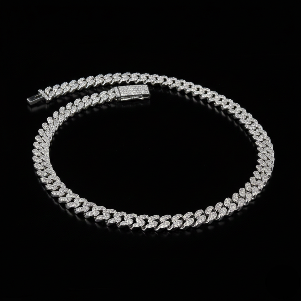 สร้อยคอแฟชั่นฮิปฮอปผู้ชายหรูหรา 950 แพลตตินัม ประดับเพชรเลี้ยงในห้องปฏิบัติการเต็มรูปแบบ ดีไซน์แบบ Cuban Link พร้อมใบรับรอง IGI