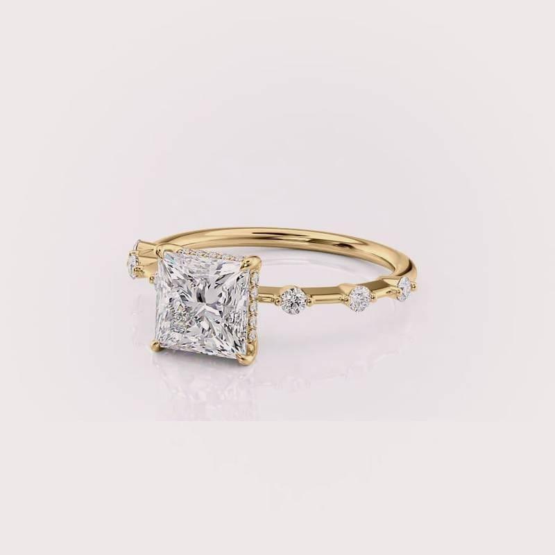 แหวนเพชรทรงปรินเซสคัทสำหรับผู้หญิง ทองคำขาว/ทองคำขาว/ทองคำเหลือง 9K หรูหรา ประดับเพชรด้านข้าง ชุบโรเดียม รับรองโดย IGI