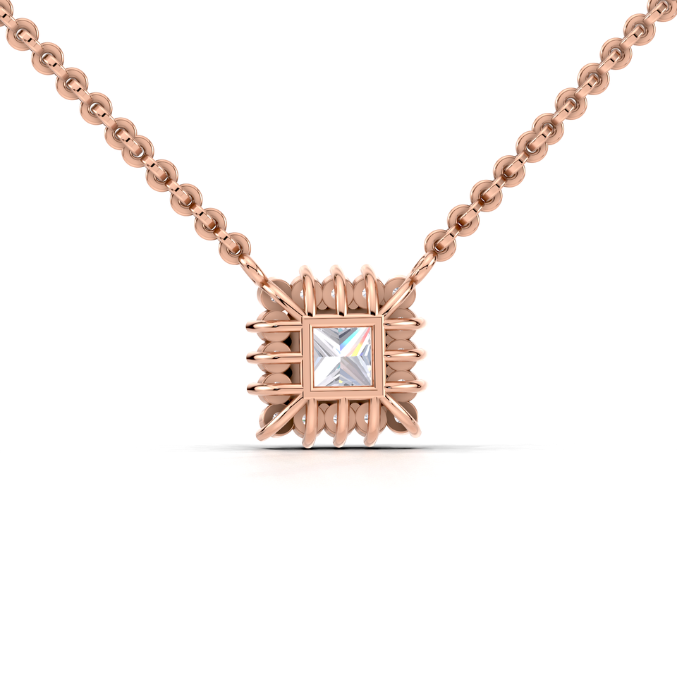 สร้อยคอจี้เพชรทรงปรินเซสคัท 1.28 กะรัต ประดับด้วยเพชรแบบเฮโล่ ทองคำขาว ทองคำขาวผสมทองคำชมพู 9K หรูหรา สำหรับผู้หญิง