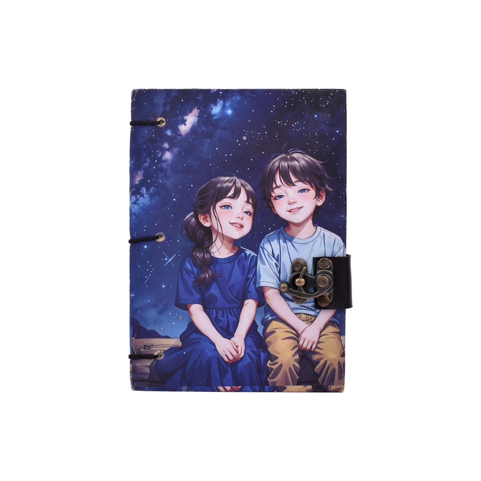 สมุดบันทึกดีไซน์การ์ตูนคู่รักสุดหรู A5 พร้อมกุญแจล็อค 200 หน้า กระดาษทำมือ ไดอารี่ปกแข็ง ของขวัญสุดสร้างสรรค์ สมุดบันทึกรักษ์โลก