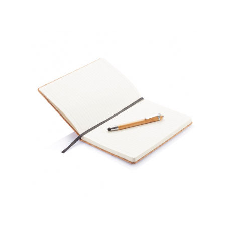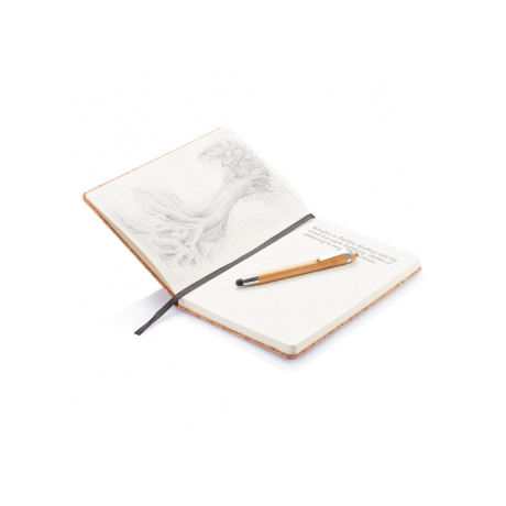 Luxury A5 Notebook with Thermal Binding Bamboo Pen Stylus Spiral Bound Printed PU Leather Cover for School Use