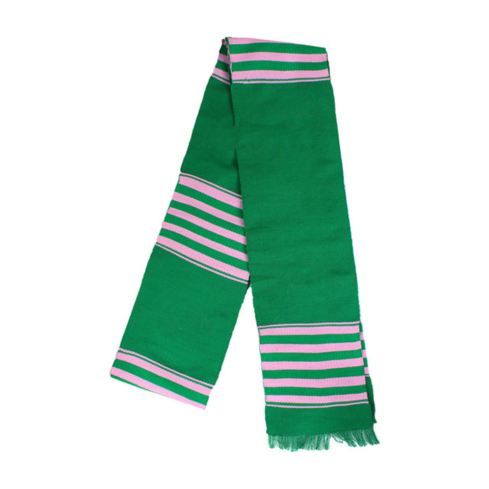 ชุดหมวกไหมพรมอะคริลิคแจ็คการ์ดสีชมพูเขียวสุดหรู พร้อมผ้าพันคอ แต่งพู่ห้อย ปักอักษรกรีก สำหรับพิธีสำเร็จการศึกษา