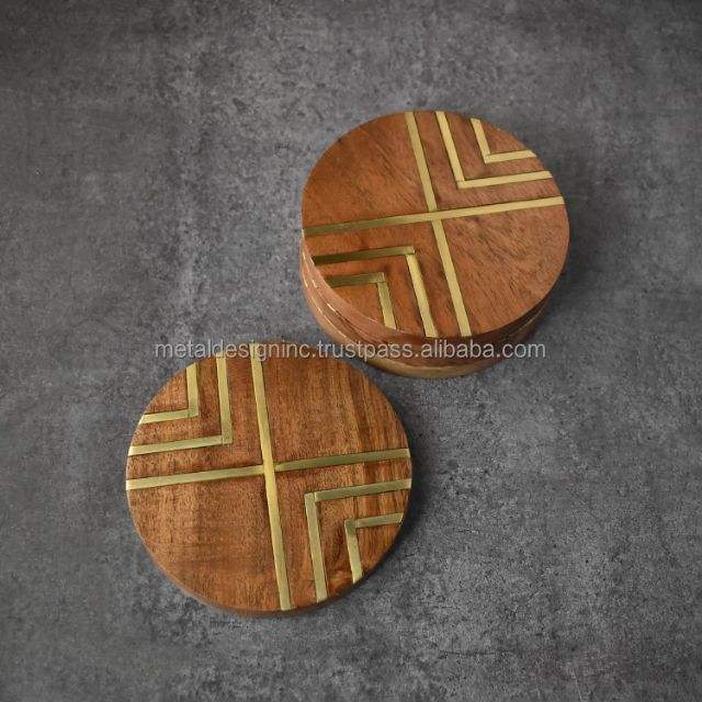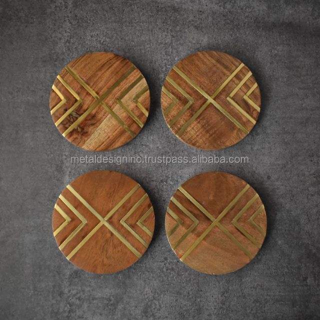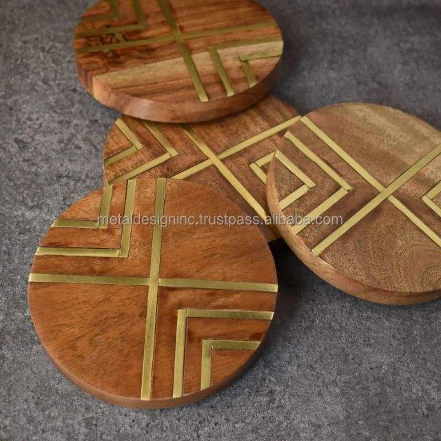 Product Name:Wooden Coasters with Brass Inlay Work