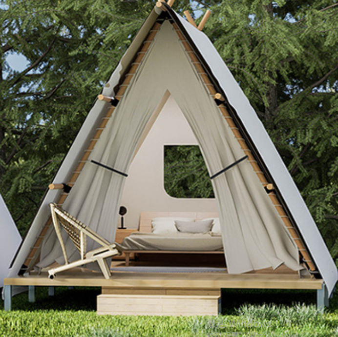 เต้นท์ทรงกระดิ่งสำหรับติดบ้านซาฟารี5คนหรูหราทรงสามเหลี่ยมผ้าใบสำหรับบ้านพักแคมป์ปิ้ง