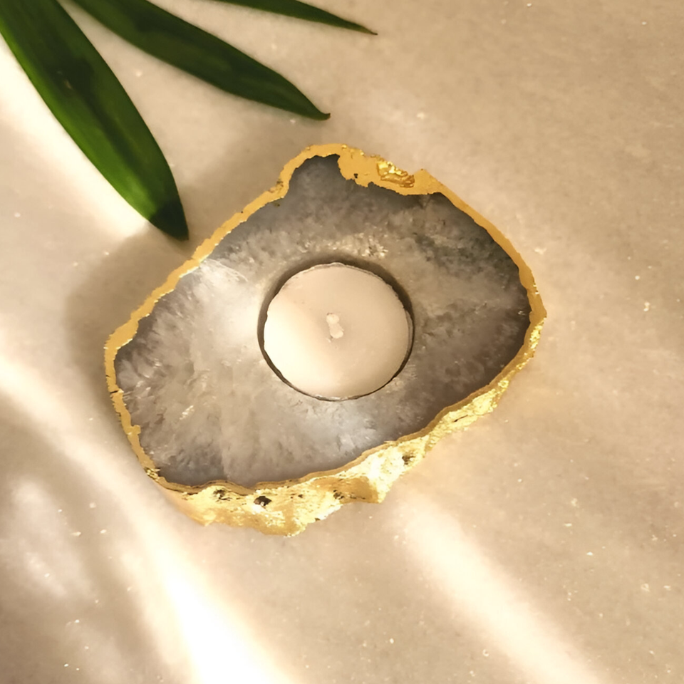 เชิงเทียนหินโมราสุดหรูที่วางเทียนทำด้วยมือสำหรับไฟชาที่ให้ความอบอุ่นขี้ผึ้งที่ไม่เหมือนใครสำหรับเป็นของขวัญและกิจกรรม