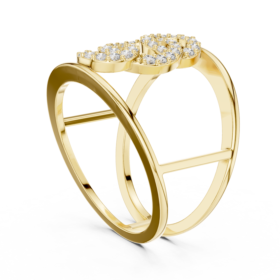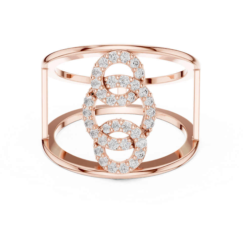 แหวนมอสซาไนต์แบบโซ่โลหะผสมหรูหราสำหรับผู้หญิง | ดีไซน์แถบคู่แบบโดดเด่น | การฝังเพชรแบบไมโครเพฟ | ของขวัญสำหรับงานปาร์ตี้