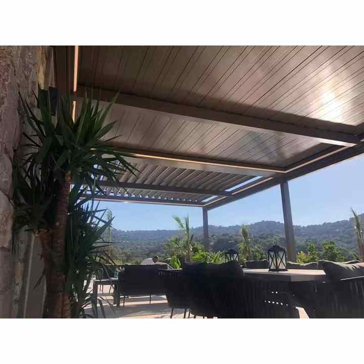 ระบบเพอร์โกลาแบบชีวภาพทำจากอะลูมิเนียมหรูหราสำหรับพื้นที่รับประทานอาหารและเลานจ์กลางแจ้ง