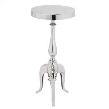 Luxury Aluminum Nesting Side Tables Set of 2 Silver Round Accent Tables with Tripod Pedestal Base for Modern Living Room Hotel
