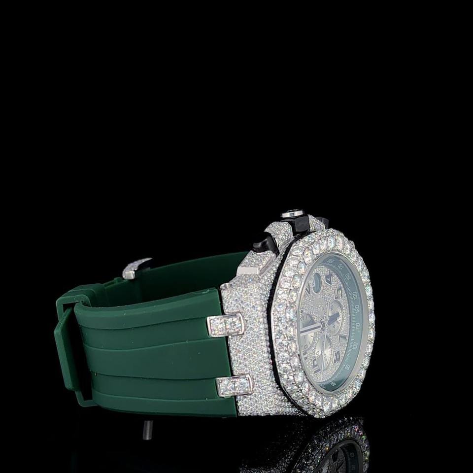 นาฬิกาควอทซ์อะนาล็อกสุดหรูนาฬิกาสเตนเลสแท้ VVS Moissanite เพชรคุณภาพสูงเครื่องประดับฮิปฮอปแก้วนักดำน้ำญี่ปุ่น