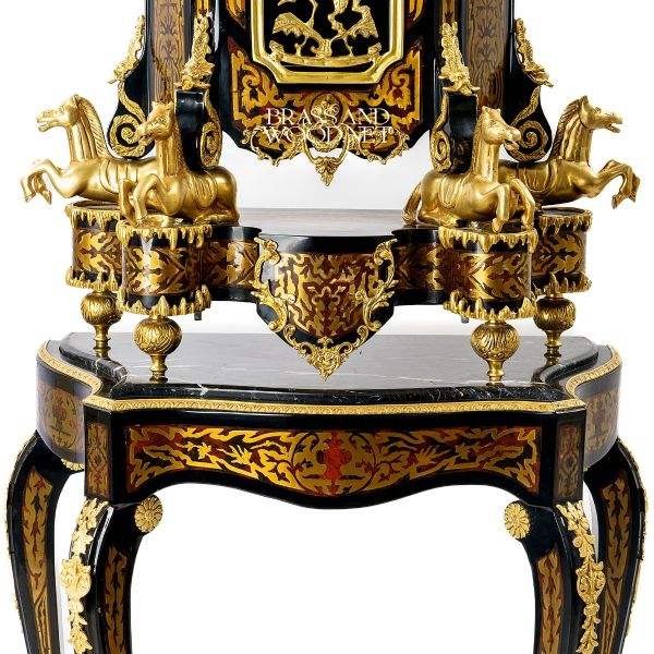 โต๊ะคอนโซลโบราณสุดหรูสไตล์บูเล่ พร้อมลวดลายทองสัมฤทธิ์ประณีต